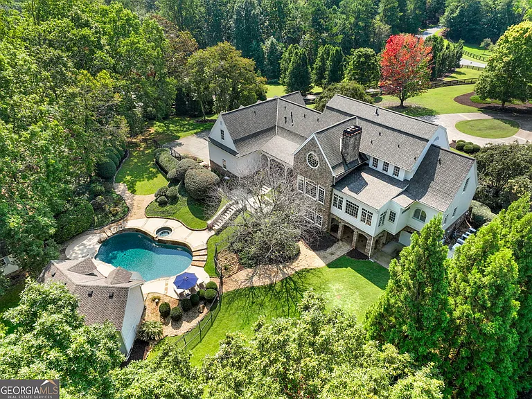 FIRST TIME ON THE MARKET! A RARE OPPORTUNITY TO OWN A SOUTHERN ESTATE ON 5+ ACRES IN DAWSONVILLE’S EXCLUSIVE GATED COMMUNITY! Welcome to your own private retreat-where timeless Southern elegance meets modern luxury. This hidden gem, tucked away on more than five acres, offers the rare combination of complete privacy, breathtaking natural beauty, and the warmth of refined design